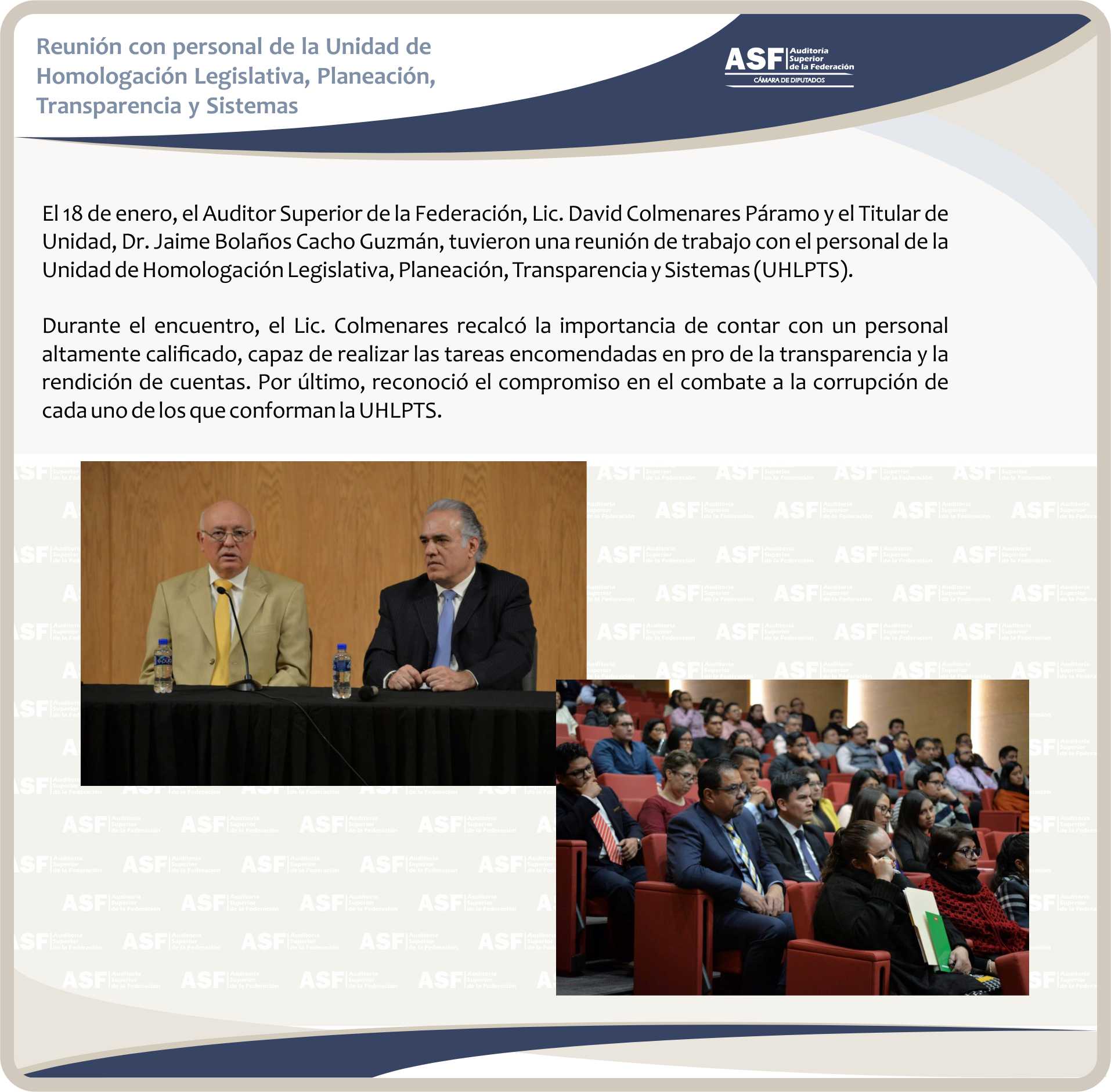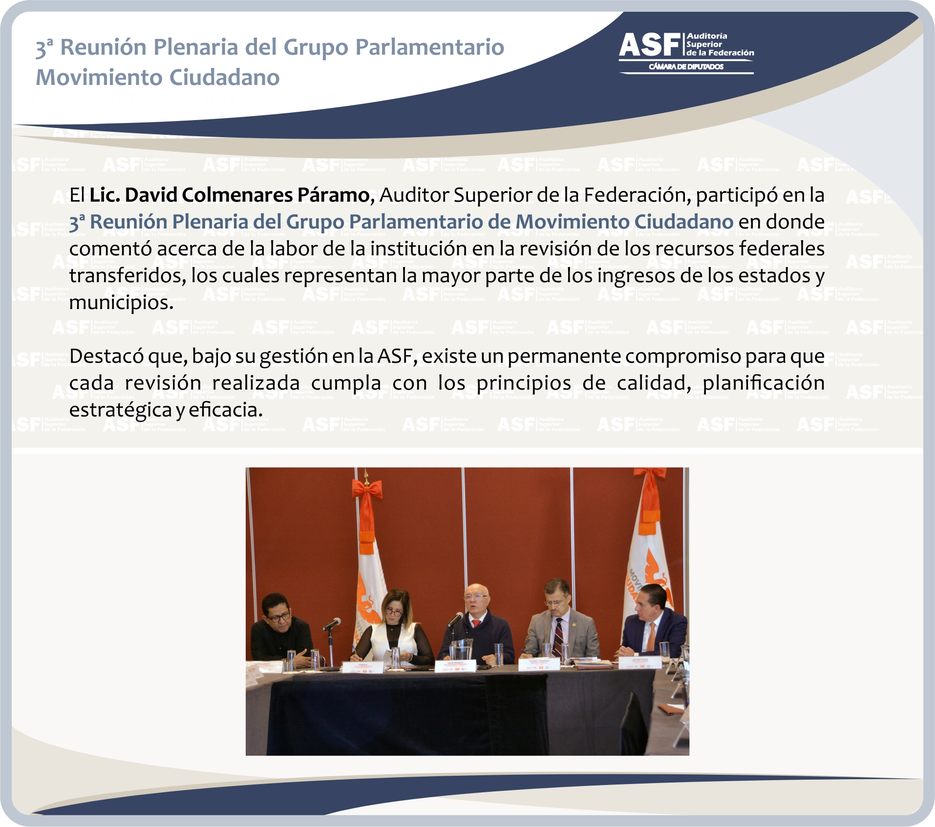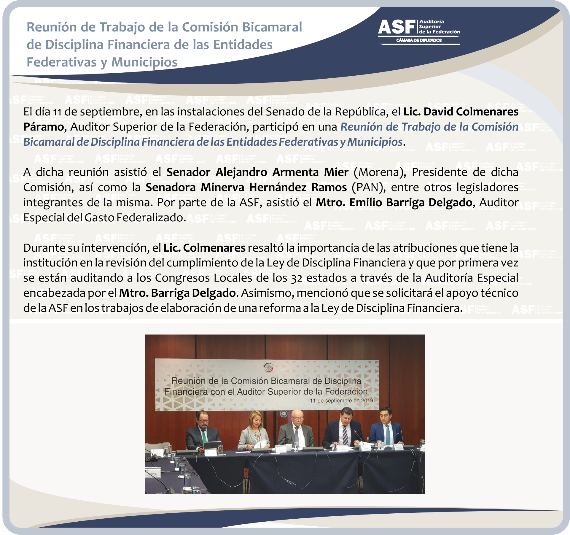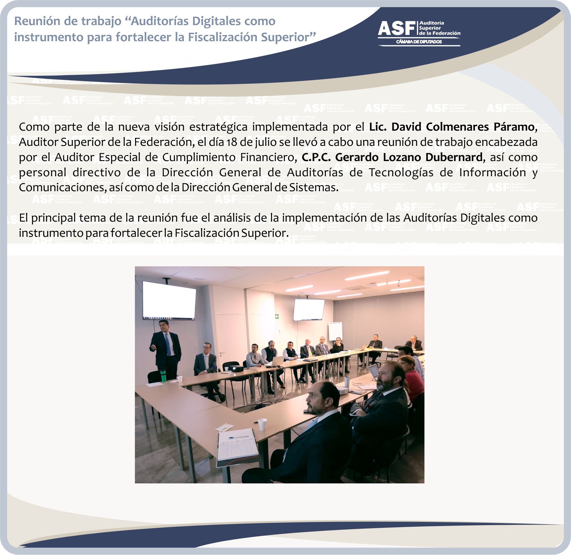 Reunión de Trabajo de la Auditoría Especial de Cumplimiento Financiero, encabezada por el C.P.C. Gerardo Lozano Dubernard, para la Elaboración del Programa Anual de Auditorías Fiscalización Superior - Cuenta Pública 2018 (08-11-18)