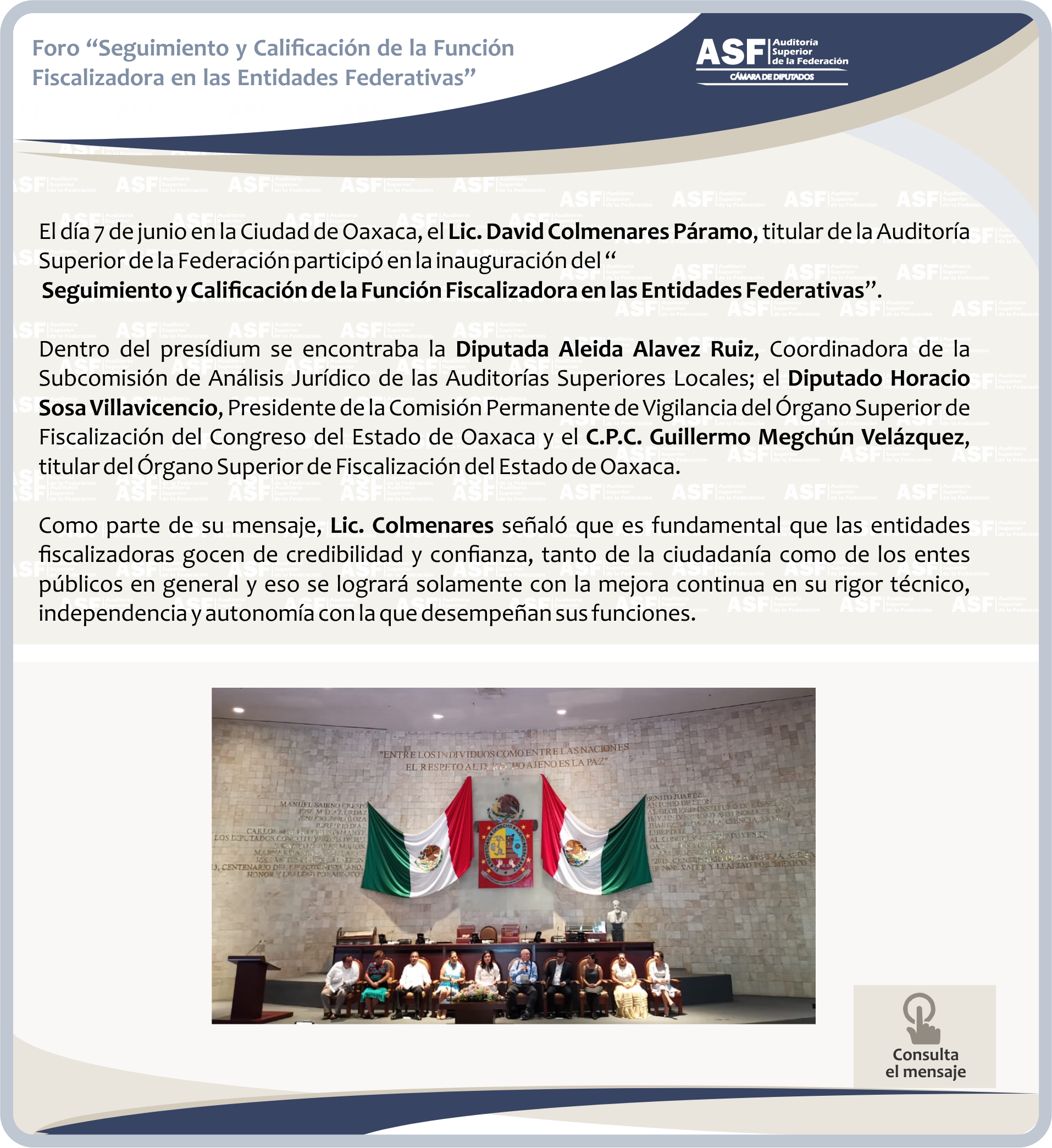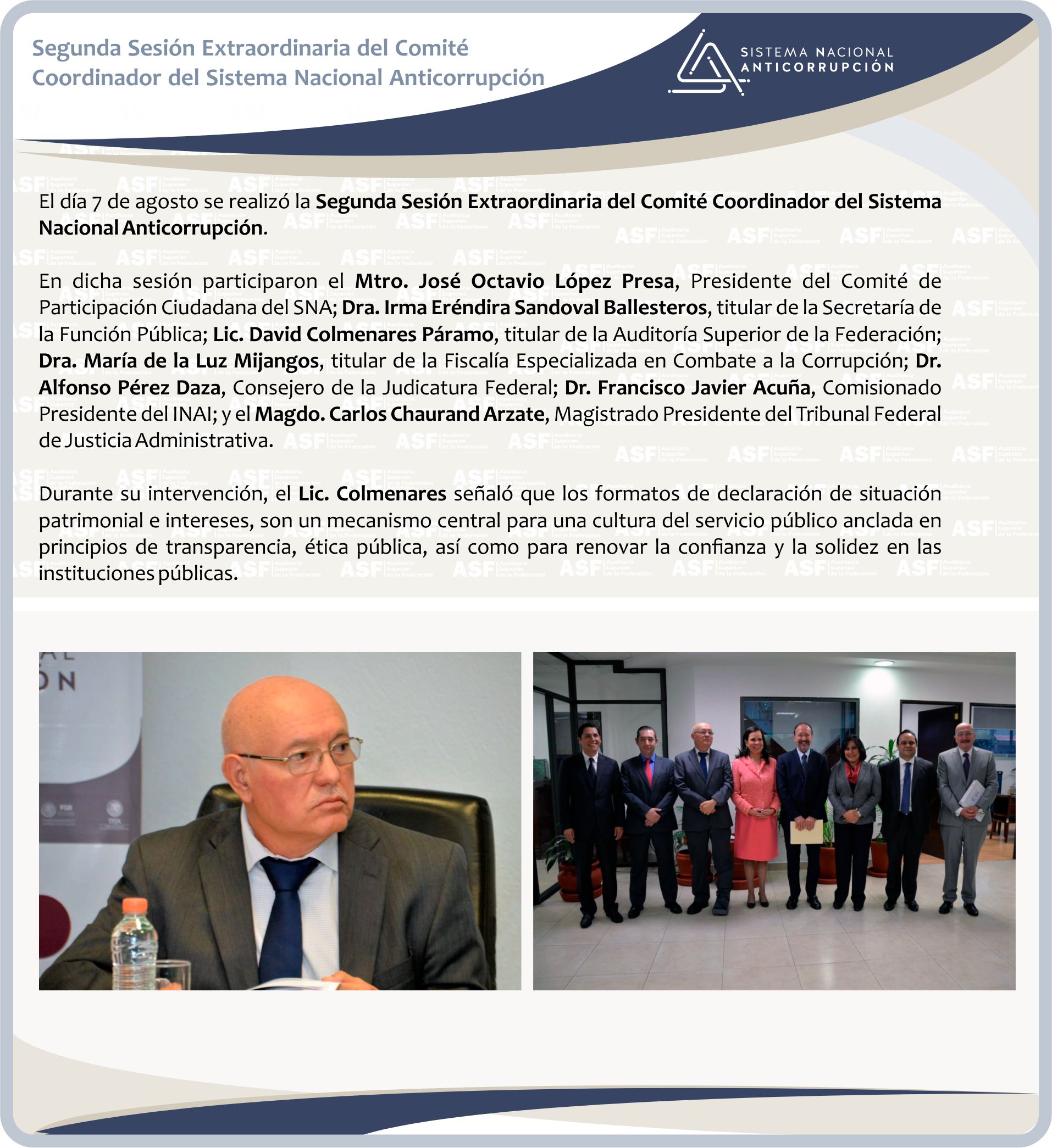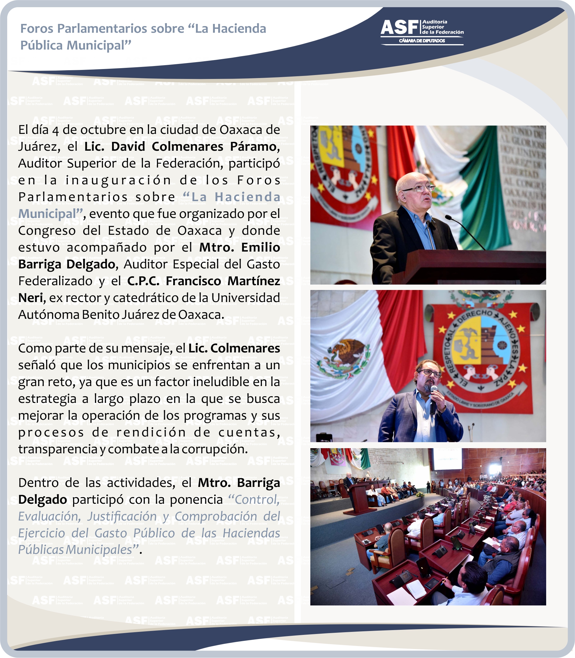 Asistieron el Mtro. Aureliano Hernández Palacios Cardel, Director General de Auditoría a los Recursos Transferidos "D" y el Mtro. Marciano Cruz Ángeles, Director General de Auditoría a los Recursos Transferidos "C", ambos de la Auditoría Superior de la Federación.