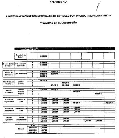 públicos de manera mensual, los límites máximos netos de estímulos por productividad,