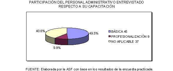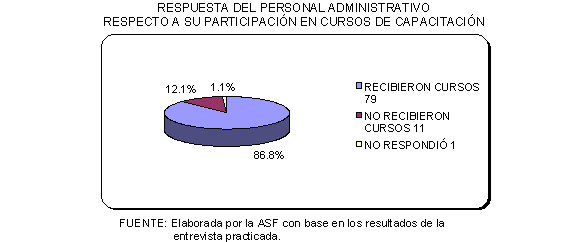 Al cuestionarse si los cursos de capacitación habían sido de utilidad en el desempeño de sus labores, 75 (82.4%) de los entrevistados señalaron que sí, 5 (5.5%) que no y 11 (12.1%) no proporcionaron información.