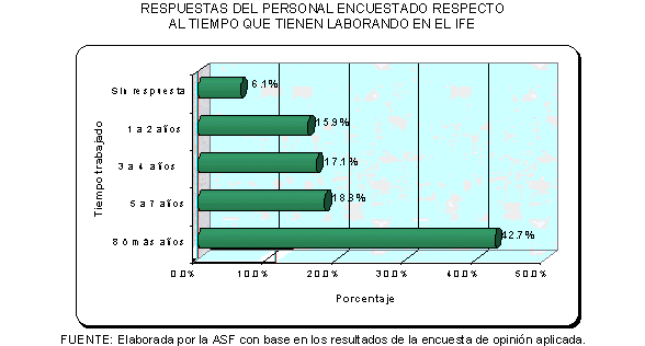 Por cuanto hace al tiempo que el personal lleva laborando en el IFE, se observó