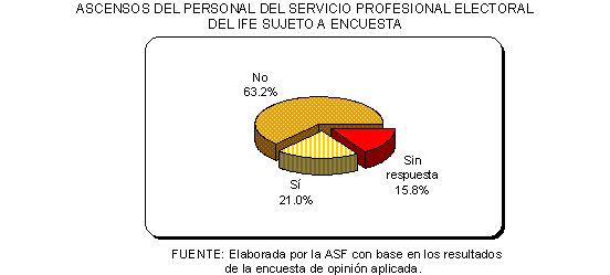 ascenso dentro del servicio de carrera; 4 (21.0%) sí y 3 (15.8) no