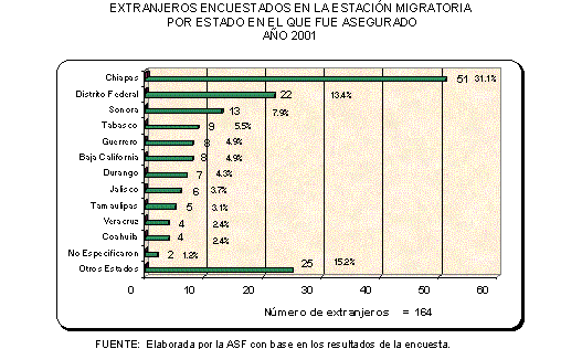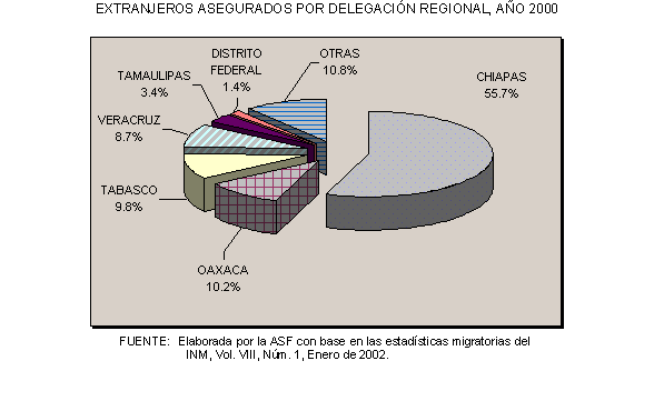 estación migratoria referida en 2000 se aseguraron 15,353 extranjeros (9.2%) de