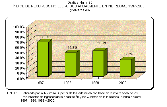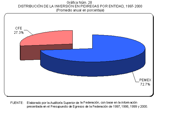 Excepto en 1997 en que una porción menor de los PIDIREGAS se canalizó a la construcción de la red carretera, en el resto de los años comprendidos entre 1997 y 2000 la inversión operada bajo el esquema de inversión pública financiada o PIDIREGAS se concentró en el sector energético y particularmente en PEMEX y CFE, entidades a las que fueron autorizados 105 proyectos en los Presupuesto de Egresos de la Federación de estos años.