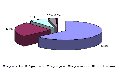 región norte por Nuevo León, Jalisco, Coahuila, Chihuahua, San Luis Potosí,