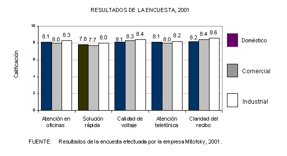 aspectos siguientes: atención en oficinas, solución rápida, calidad de voltaje,