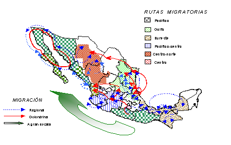 De acuerdo con la movilidad de los trabajadores migrantes y el tipo de productores, en dicho documento se divide al país en tres grandes zonas: de expulsión, situadas en los lugares de origen de los trabajadores migrantes, como son los estados de Guerrero y Oaxaca; intermedias, constituidas por las regiones que ofrecen empleo temporal cerca de los lugares de origen de los jornaleros, donde coexisten zonas de atracción y expulsión, como en Veracruz, Puebla, Hidalgo y San Luis Potosí; y de atracción, que comprenden los estados de Baja California, Baja California Sur, Sonora y Sinaloa, donde los trabajadores buscan contratarse por temporadas prolongadas, generalmente en grandes propiedades agroindustriales orientadas en su mayoría a los mercados exteriores.