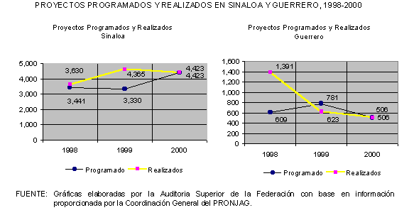 La auditoría comprendió la evaluación de los resultados obtenidos por la SEDESOL durante el periodo de 1998 a 2000 en la operación del PRONJAG, que en 2000 se registró en la actividad institucional 210 "Promover el Desarrollo en Localidades y Grupos Marginados", proyecto I055 "Brindar atención integral a jornaleros agrícolas". Los trabajos de auditoría se realizaron tanto en las oficinas centrales del PRONJAG, para conocer el comportamiento nacional del programa, como en localidades seleccionadas de Sinaloa y Guerrero, donde se efectuaron pruebas de auditoría en campamentos de trabajadores migrantes.