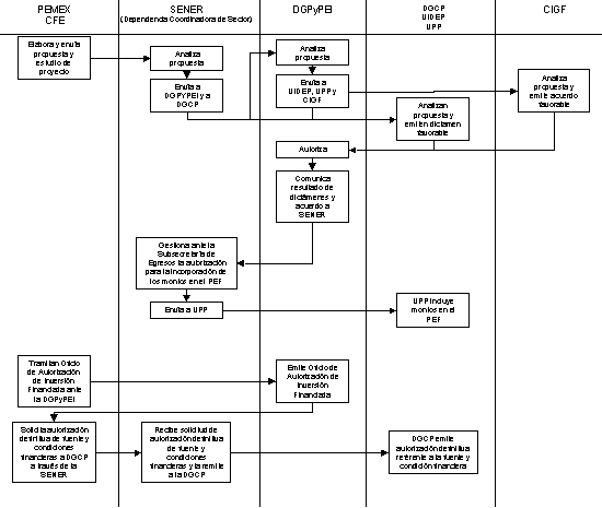 Operativamente, los mecanismos para regular la autorización y ejecución de los proyectos se incorporaron inicialmente en el Manual de Normas para el Ejercicio del Gasto en la Administración Pública Federal, emitido por la Secretaría de Hacienda y Crédito Público (SHCP) el 28 de diciembre de 1996, en el cual a los proyectos a ejecutarse bajo este esquema se les denominó de "Proyectos de Infraestructura Productiva de Largo Plazo" o "PIDIREGAS". A partir de ese año, en el Manual referido y sus subsiguientes, se presentan ajustes y actualizaciones a la normatividad respecto de la autorización, operación, denominación y clasificación de este tipo de proyectos. Respecto de su registro contable y presupuestal, las Secretarías de Hacienda y Crédito Público y de la Contraloría y Desarrollo Administrativo emitieron las Normas NIF-09 y NIF-09-A.