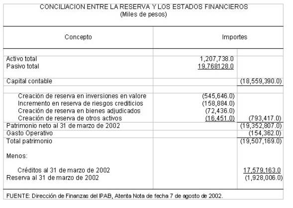 del 2000. Al cierre de la auditoría (julio del 2002), el IPAB no había