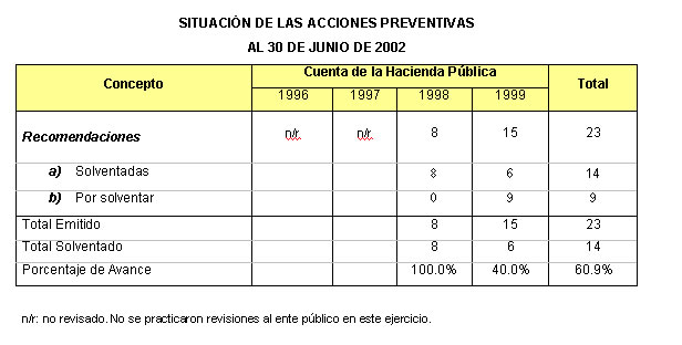 ejercicios de 1996 a 1999 se formularon 23 recomendaciones, de las cuales se